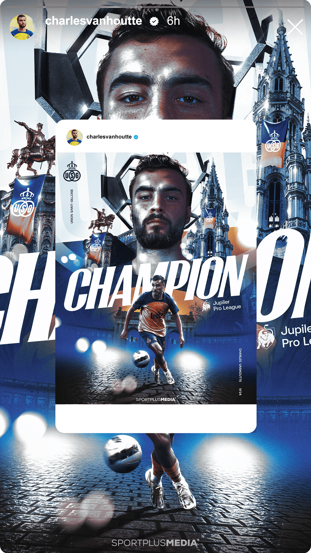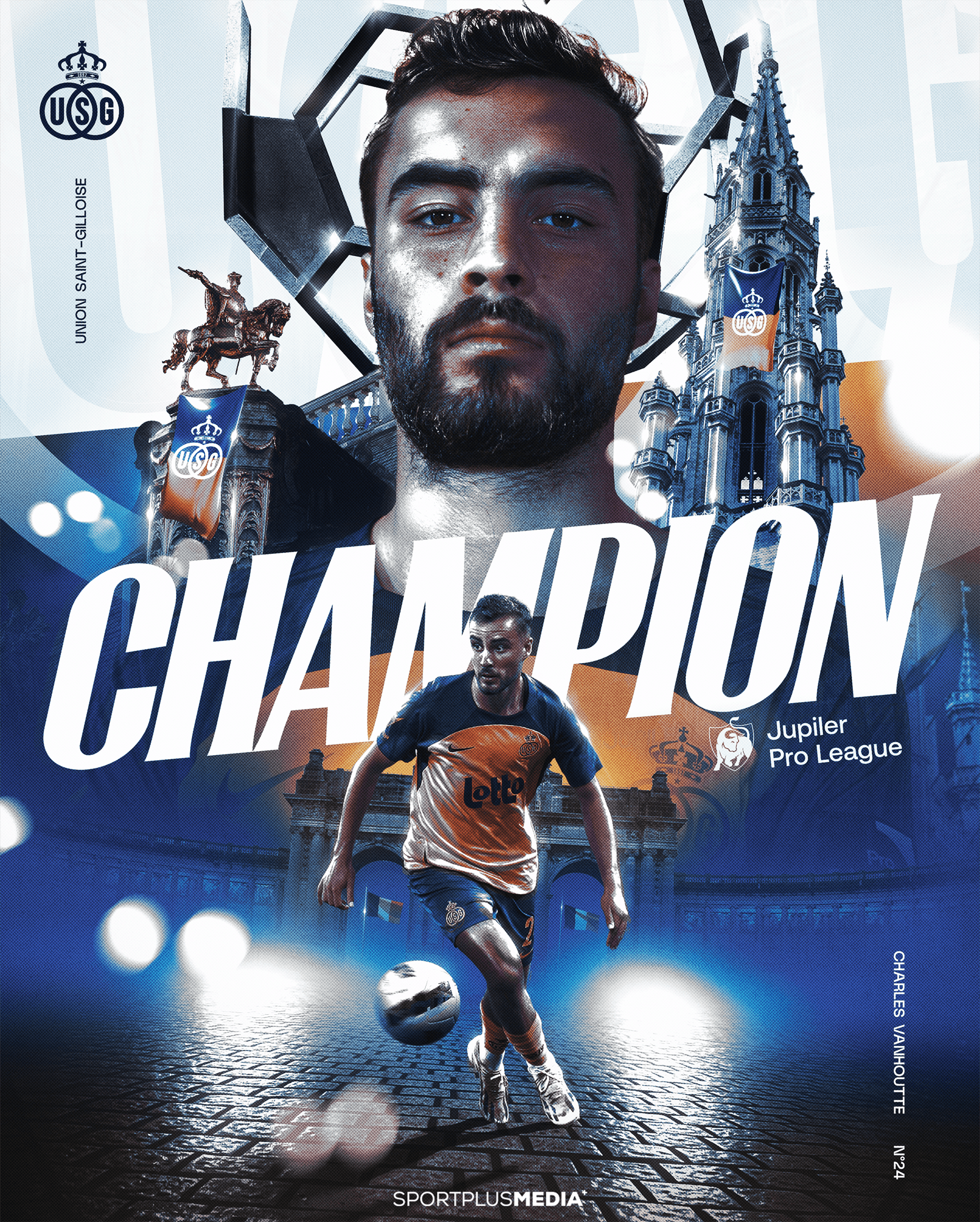 Conception et réalisation dU VISUEL CHAMPION POUR CHARLES VANHOUTTE SUITE AU TITRE REMPORTé DE JUPILER PRO LEAGUE PAR L'UNION SAINT-GILLOISE